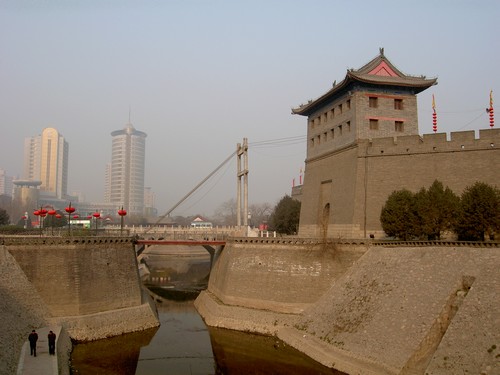 Todd, 西安的城墙沟里面有水,所以叫做城河或护城河。注意到没有,南门外护城河上有一“吊桥”呢。